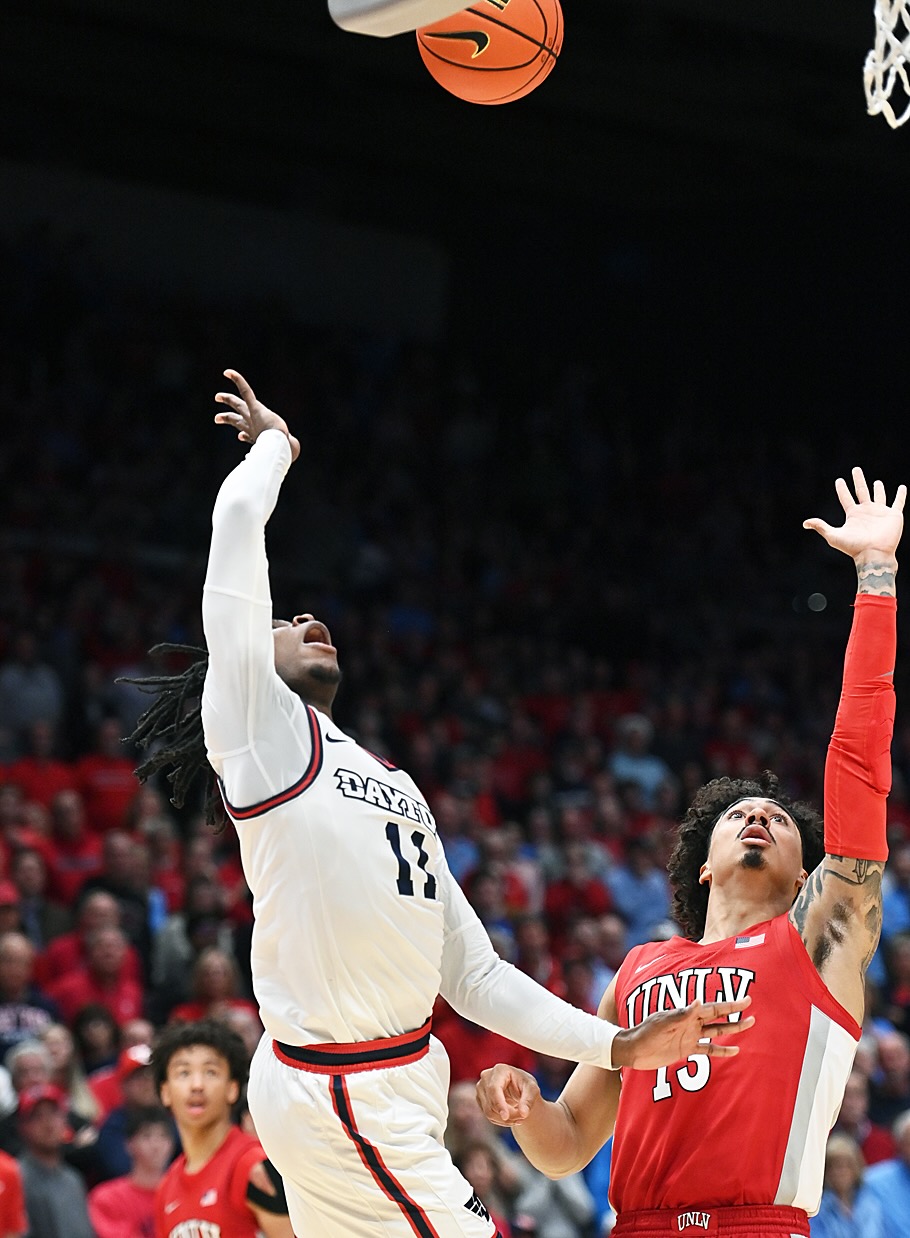 With only three days to recover from the emotional high and physical exertion of beating No. 6 Marquette Saturday, the University of Dayton basketball team faced a bounce back dilemma Tuesday and avoided an upset defeat when Malachi Smith converted a three-point play with eight seconds left to beat UNLV, 66-65.