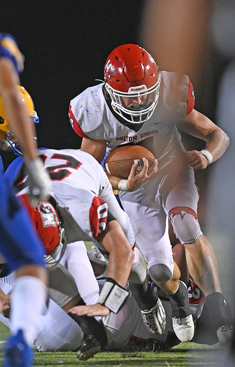 Week 8 opens the final push for the finish line, with three area ranked teams unbeaten. While teams like Milton Union (above) are playing for position and the potential for a share of the conference title. Read more in this week's Friday Night 'Picks', sponsored by the Orthopedic Associates of Southwest Ohio.