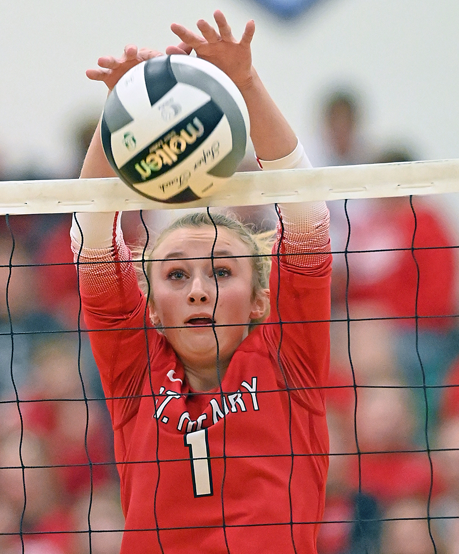 St. Henry and Chloe Gels (below) ousted Jackson Center in four sets, and Fort Loramie knocked rival Russia out in straight sets Thursday to advance to the Division IV regional volleyball finals on Saturday.