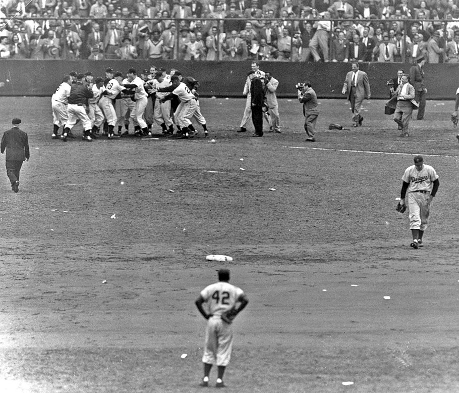 Iconic baseball dejection, as the Dodgers' Jackie Robinson (#42, foreground) watches the Giants' Bobby Thompson touch home plate to win the 1951 pennant. Can you tolerate another tease by the Reds, the ultimate empty promise of ownership of another off-season, and anticipation of another year?