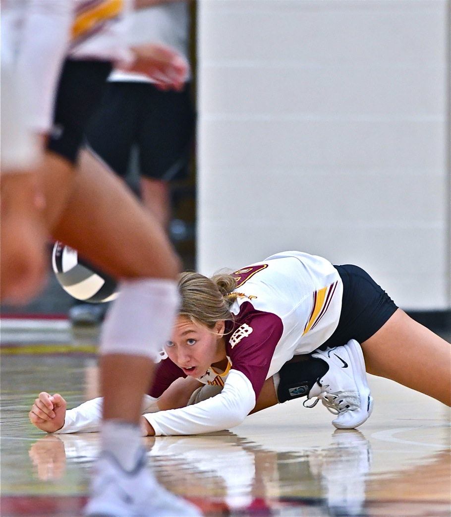 Skinned knees and elbows? It didn't matter. Rianna Paul scrambled to save a point (below) in New Bremen's Tuesday volleyball win over South Adams, and one of the most emotional moments of a team's time together. Read more in the latest Press Pros feature.