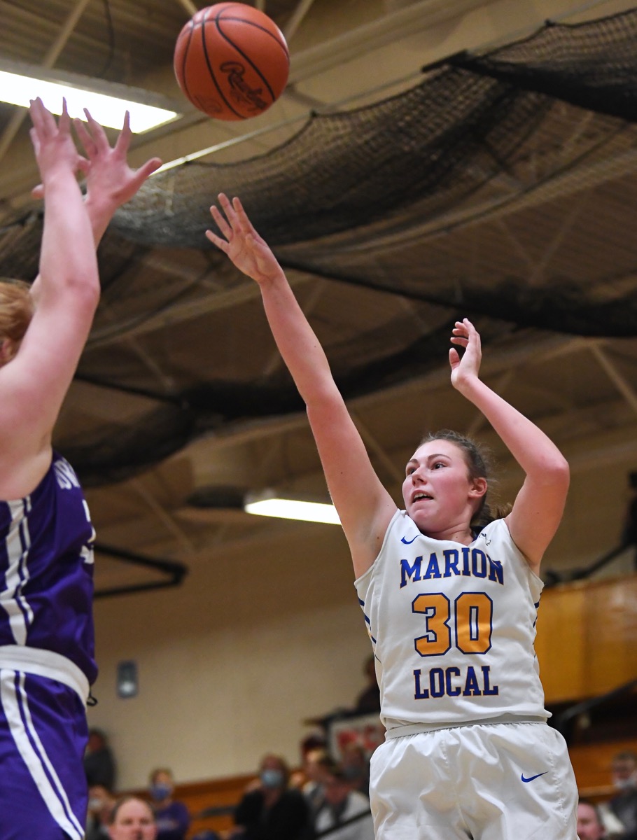 Big Shots At Big Times...Marion's Lindsey Koenig's shot at the buzzer gave Marion Local a 21-13 halftime lead, and they rode their defense Thursday for an eventual 42-32 win over Fort Recovery. Read more in today's Press Pros.