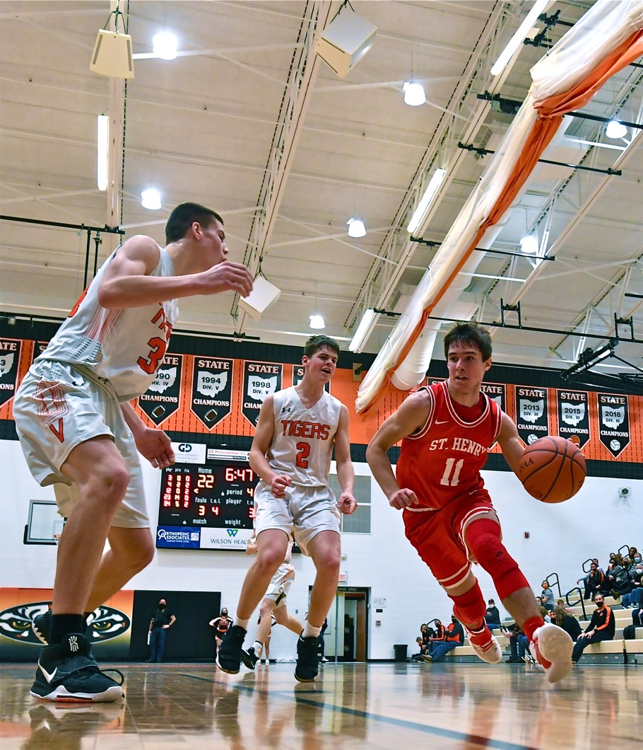 It was 'any given night'  for the first sixteen minutes.  But then fate, or defense, or the rim shrinking - something - flummuxed Versailles on their way to a 48-36 loss to St. Henry. Read more in the latest Press Pros MAC feature.