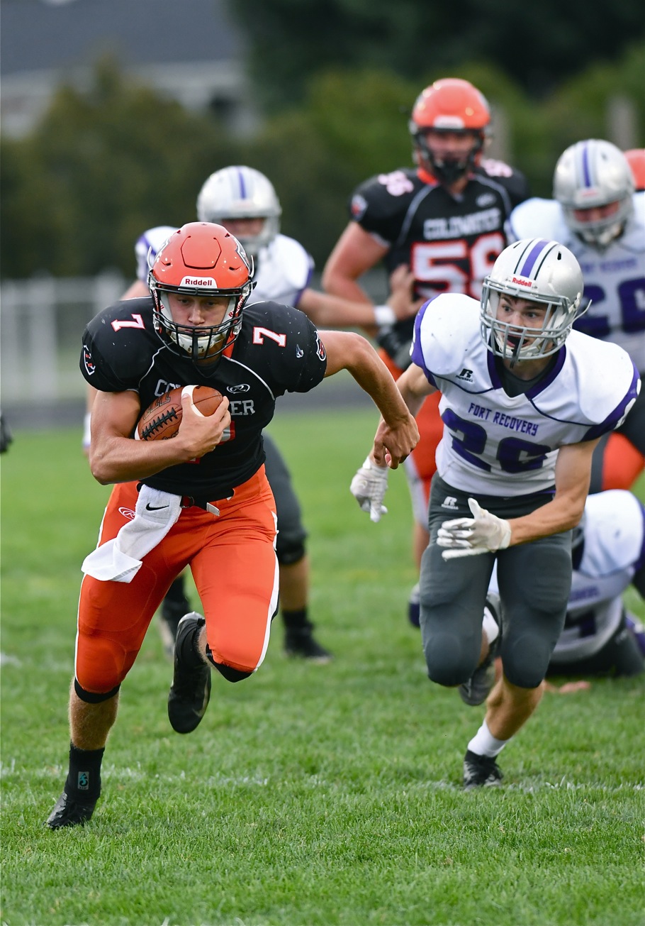 Myles ahead of the rest....Coldwater scored early and often (Myles Blasingame, below), feasted on big plays and statistical breakouts, then held on during a Fort Recovery fourth quarter resurgence to win and stay unbeaten. Read today's Press Pros feature.