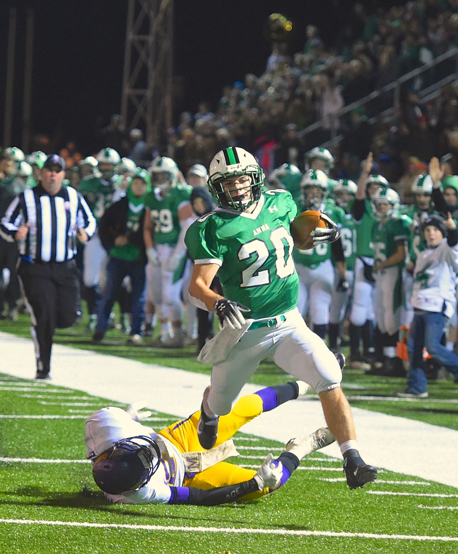 Big night for Riley, huge night for Anna...Riley Huelskamp (below) scores the fourth of his four touchdowns Friday to give Anna the state semi-final win over Mechanicsburg and the Rockets their first trip to Canton in football. Read about it in today's Press Pros.