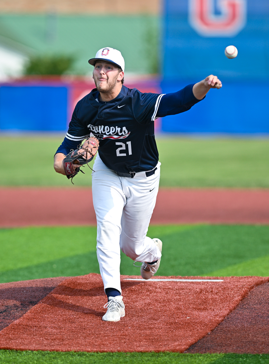 Jacob Tabor rose to the task in the biggest start of his career, striking out 11 in a complete-game, one-hitter to help Olentangy Orange to a 7-1 victory over Pickerington North that gives the Pioneers a district title and a berth in the Division I regionals. (PressPros Feature Photo by John Hulkenberg).