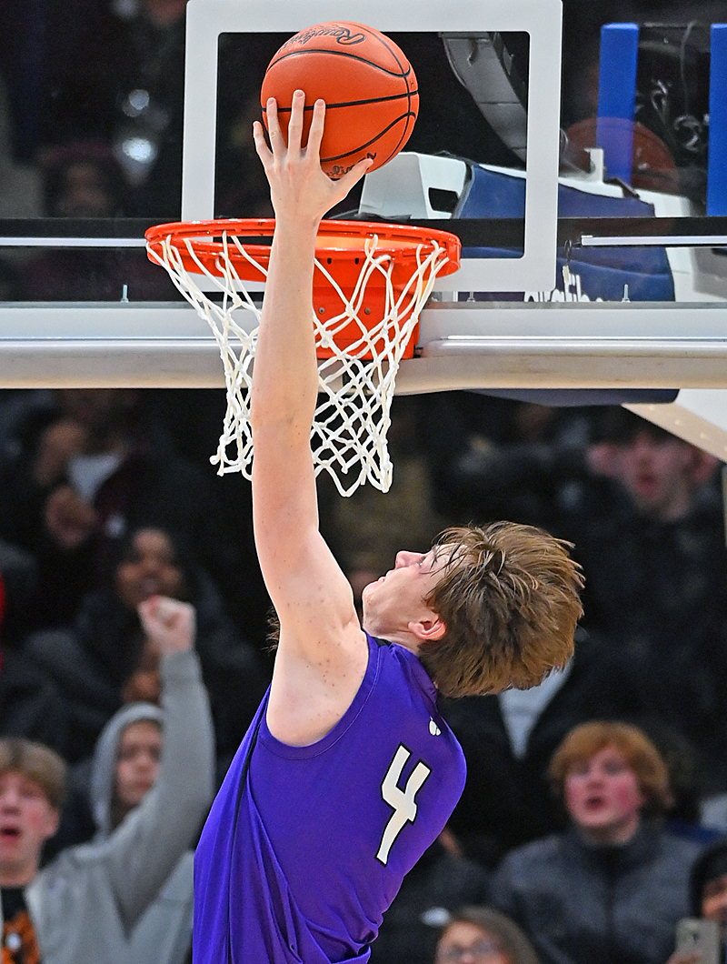 The rematch of 2022's big-school title game predictably came down to the wire again. While the last two Mr. Basketball winners, Devin Royal of Pickerington Central and Gabe Cupps of Centerville, put on a show, it was Markell Johnson's 10-foot, left-handed hook shot in the lane with 1.3 seconds that gave the Tigers a 57-53 win. Pickerington's Gavin Headings (above) tips in the final two points of the Pick Central win.