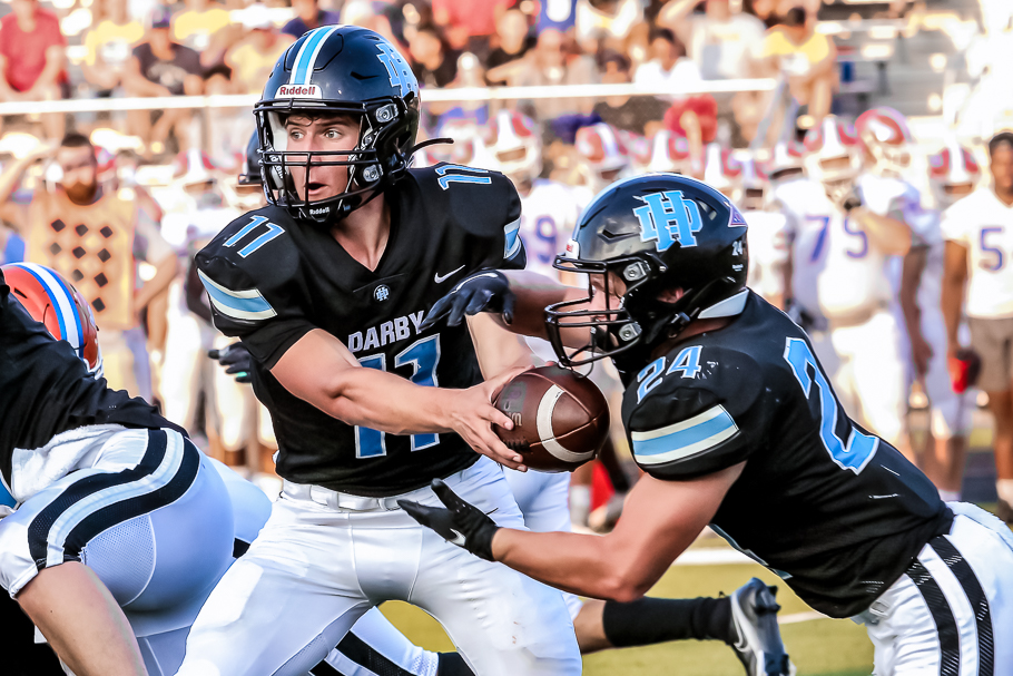 Hilliard Darby's option attack with QB Blake Horvath and RB James Hakes will probe the interior of cross-town rival Hilliard Bradley's defense (Press Pros feature photo by Brian Bayless)