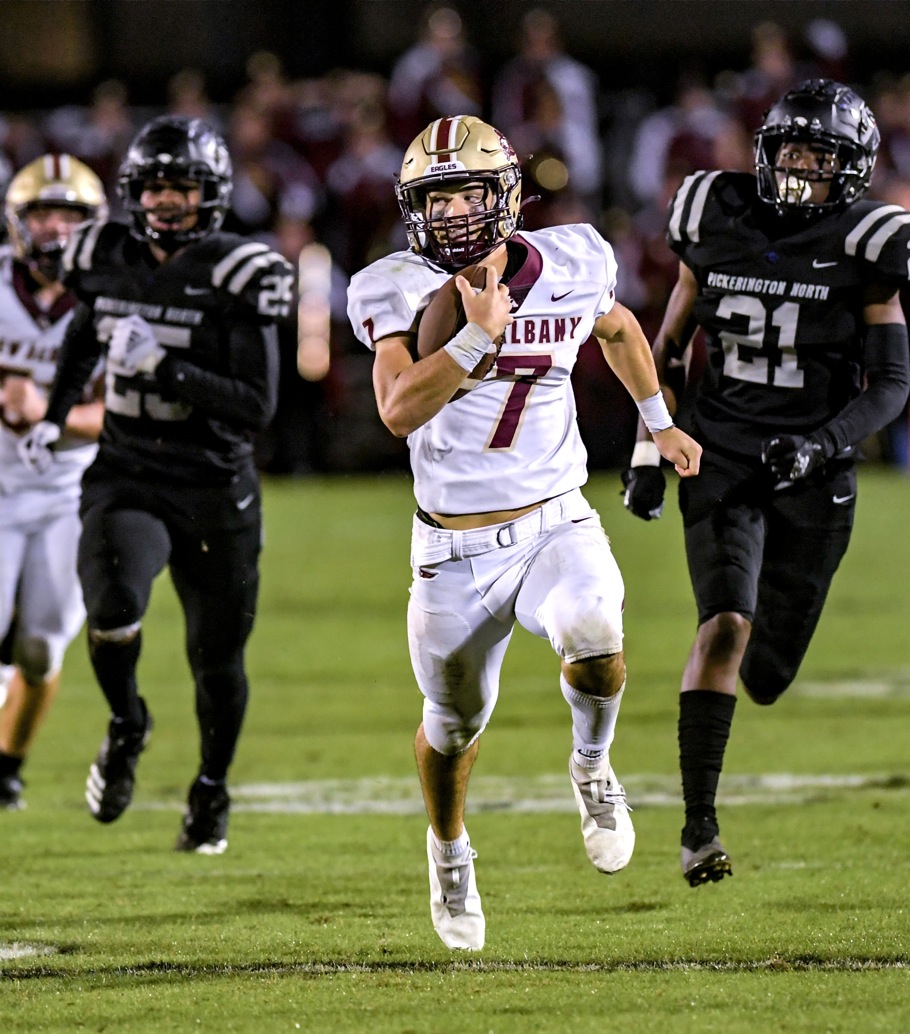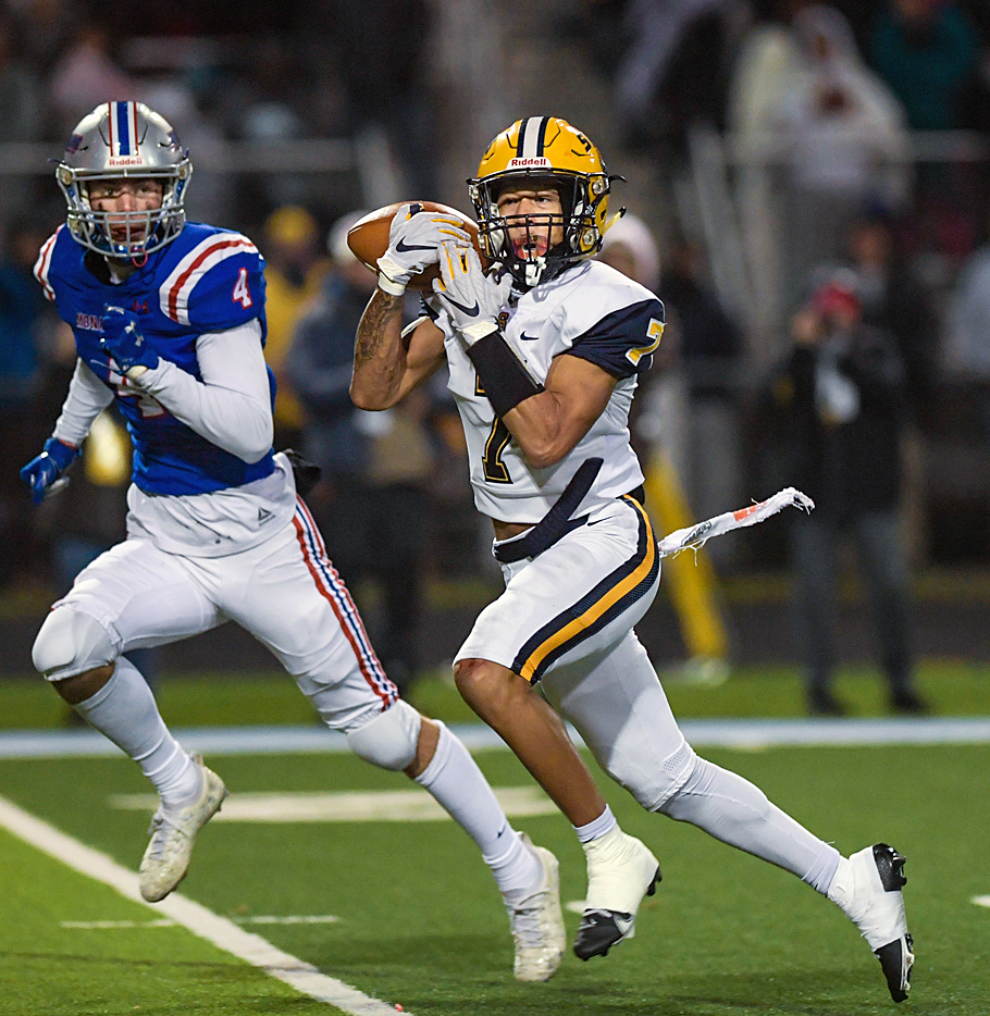 Te'Sean Smoot passed for 363 yards and two TDs and also ran for two scores as Springfield rolled to its third consecutive Division I regional title. Springfield's Anthony Brown (7) hauls in a reception while Marysville's Cameron Jones (4) pursues. (pictured). Steve Blackledge writes for Saturday Press Pros.