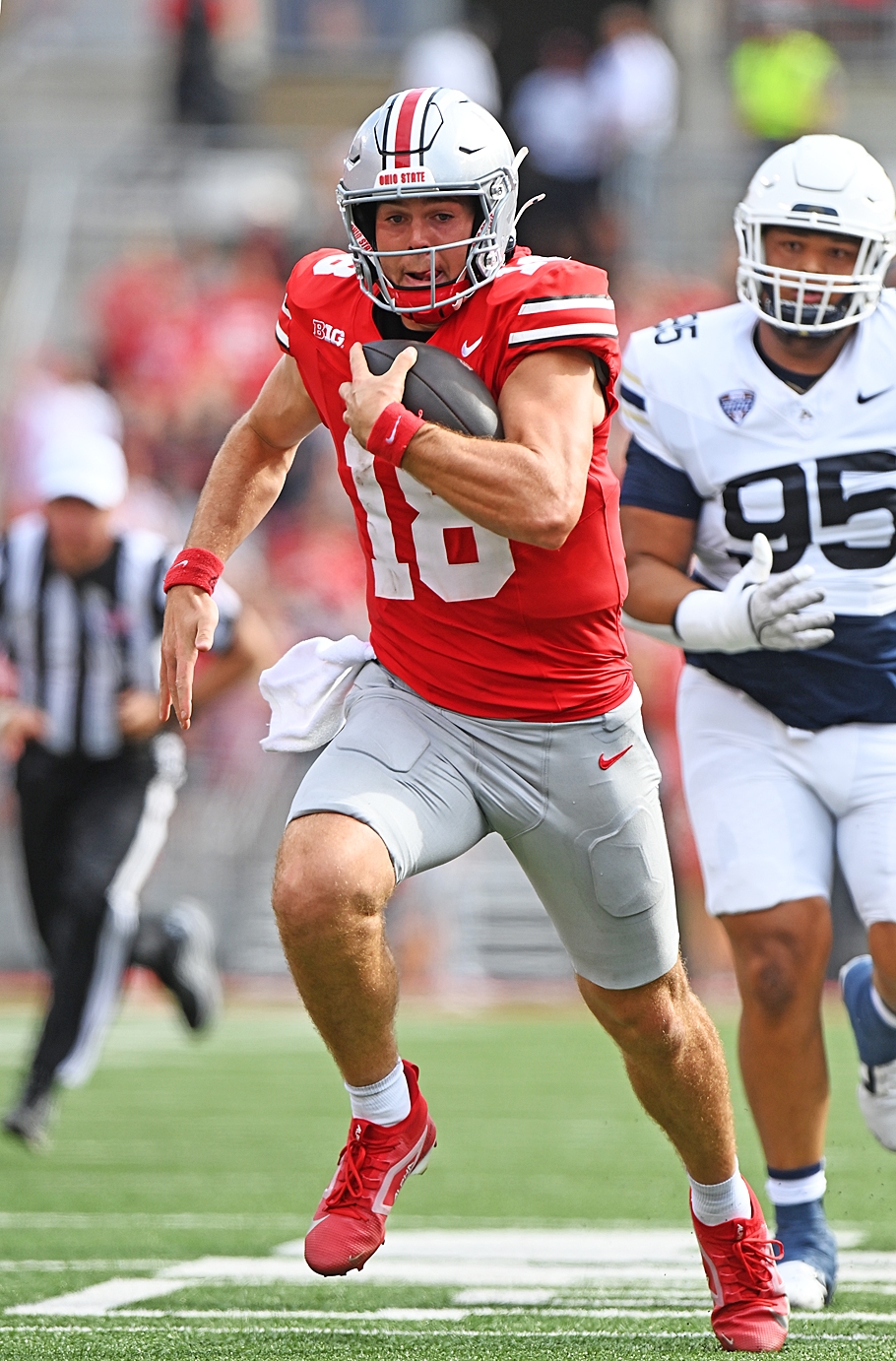 Quarterback Will Howard (above) and freshman receiver Jeremiah Smith shined in their Ohio State debuts, the defense more than showed up as expected and the Buckeyes started a season of high expectations with a runaway second half. Jeff Gilbert writes the story for Press Pros.