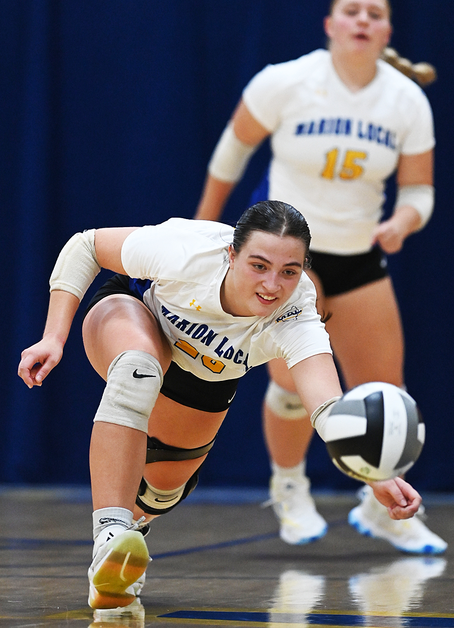 Gaining confidence, and a bit of verve with each passing match, Marion Local and Chloe Ronnebaum (above) joined Coldwater as the MAC's only unbeatens with a straight-set win Tuesday over Russia. Read more in Wednesday's Press Pros.