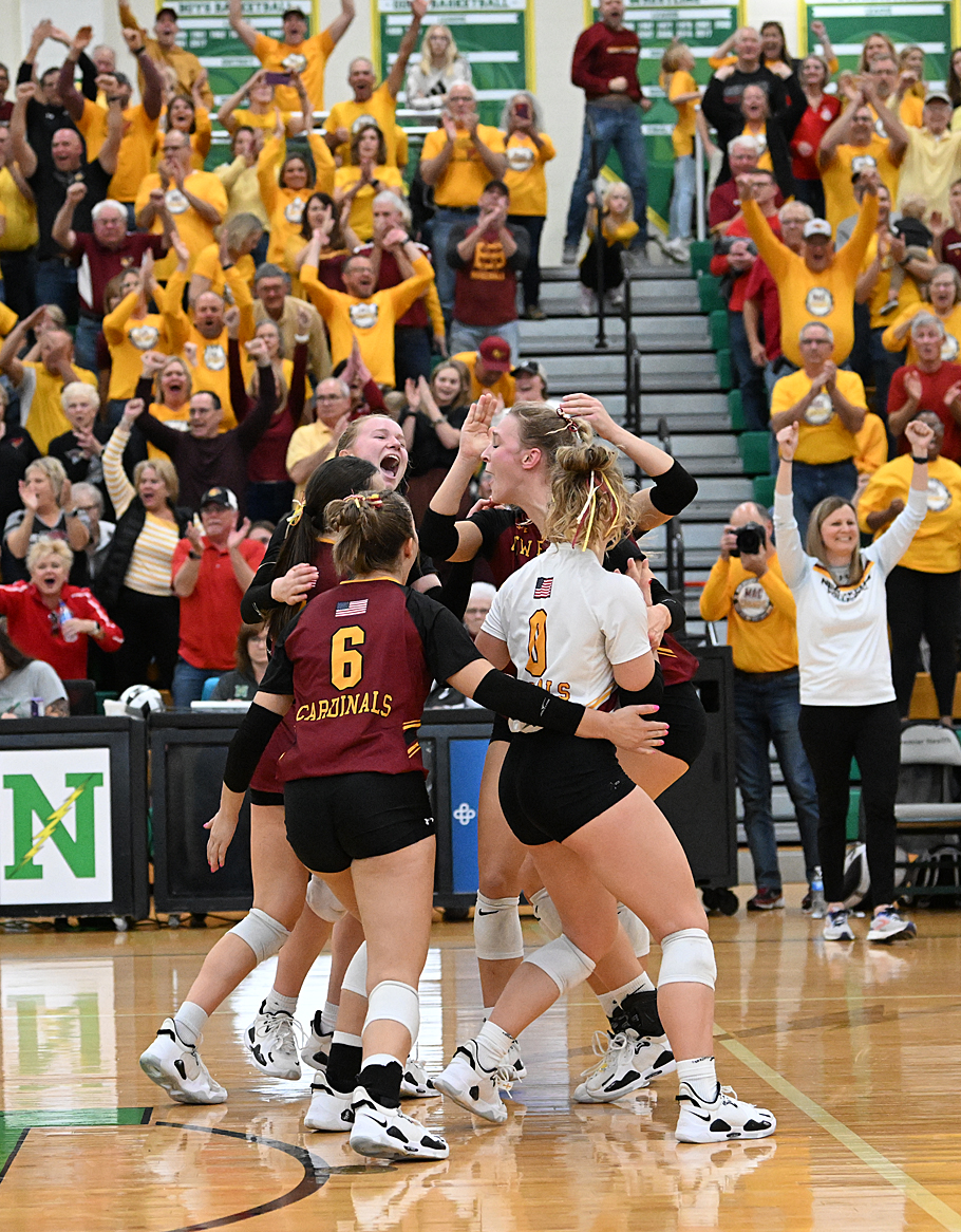 Coldwater's Marcel Blasingame (#5, above) accepts congratulations from teammates after coming off the bench Friday to lead the Cavaliers to a 14-3 comeback win over Huron in a Division V playoff game. Three weeks ago, he broke his left leg, requiring surgery and eight screws to fix it. Read about his story, and the game, in Saturday's Press Pros.