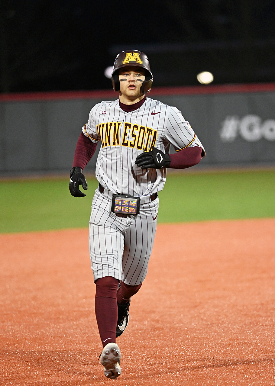 Game of firsts...Freshman Henry Kaczmar connected for his first collegiate home run (above) in the eighth, starting pitcher Gavin Bruni collected his first collegiate win, and the Buckeyes nailed down their first conference in in 2023 with Saturday's 6-2 win over the Minnesota Golden Gophers. Read more about the game.