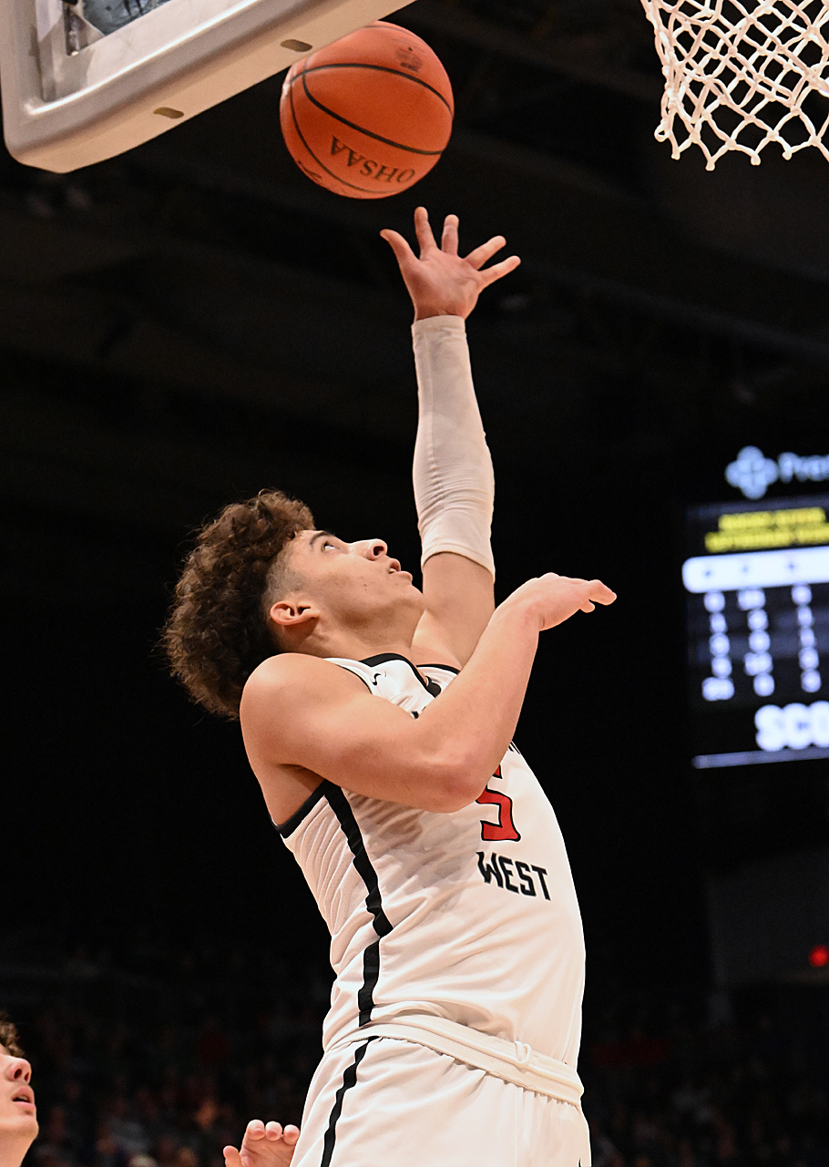 In the tournament's first Division II semi-final, Lutheran West survived a back-and-forth battle to knock out Chaminade-Julienne with a last-second shot from Matthew Meyer (above).
