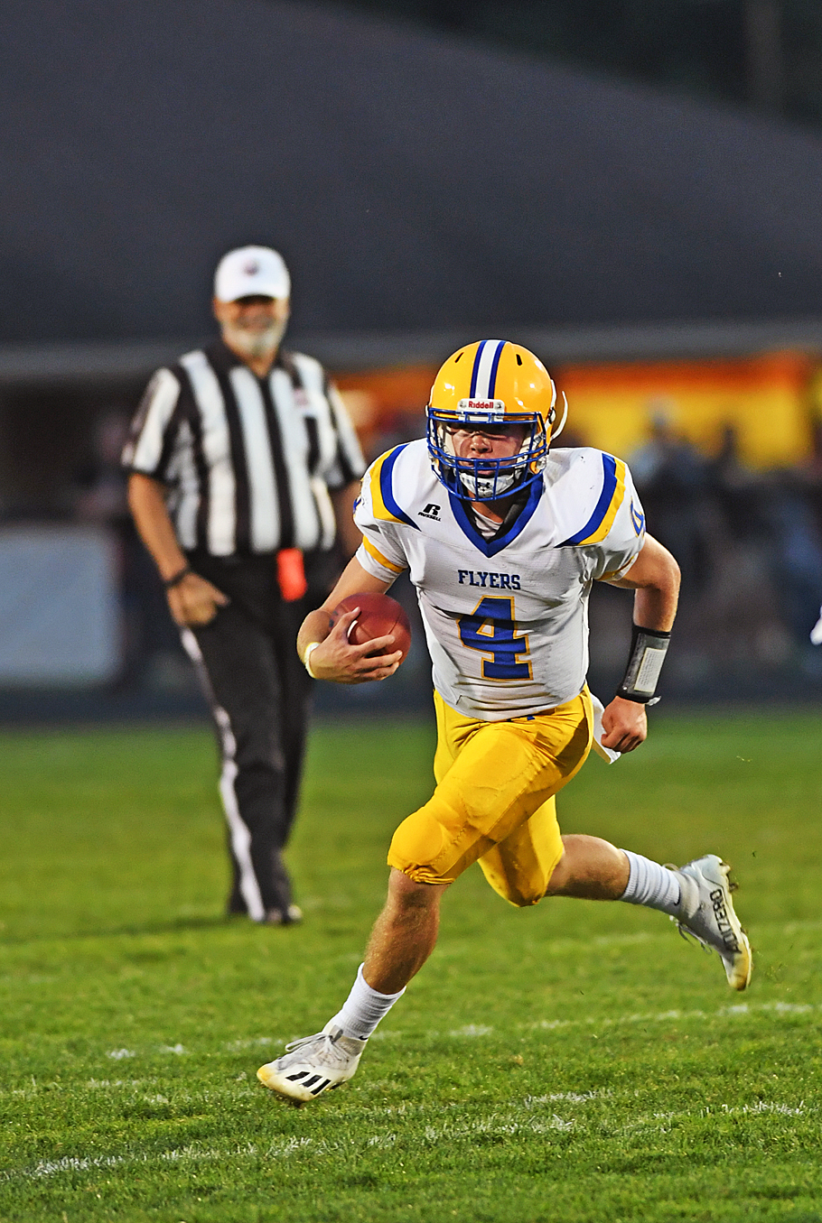 Coldwater is two wins away from a state championship. Sounds familiar, doesn’t it? Behind a near-flawless effort in every phase of the game, the Cavaliers cruised to a 49-7 victory over the upstart Allen East Mustangs in the Division VI, Region 24 Final. Running back, Isaac Fullenkamp (pictured) flips with excitement into this touchdown. Read about Coldwater's win in today's PresPros.