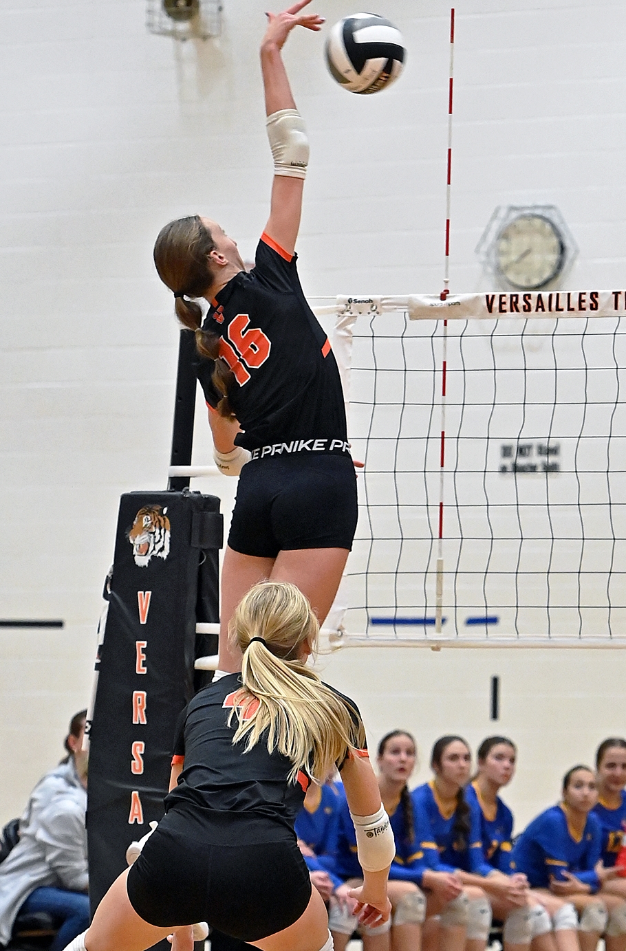 As energy-packed and entertaining as you could want, Versailles made a statement on both the present and the future (sophomore Kiley May, above) with a MAC-concluding win over #5 Marion Local. Read more about the match.