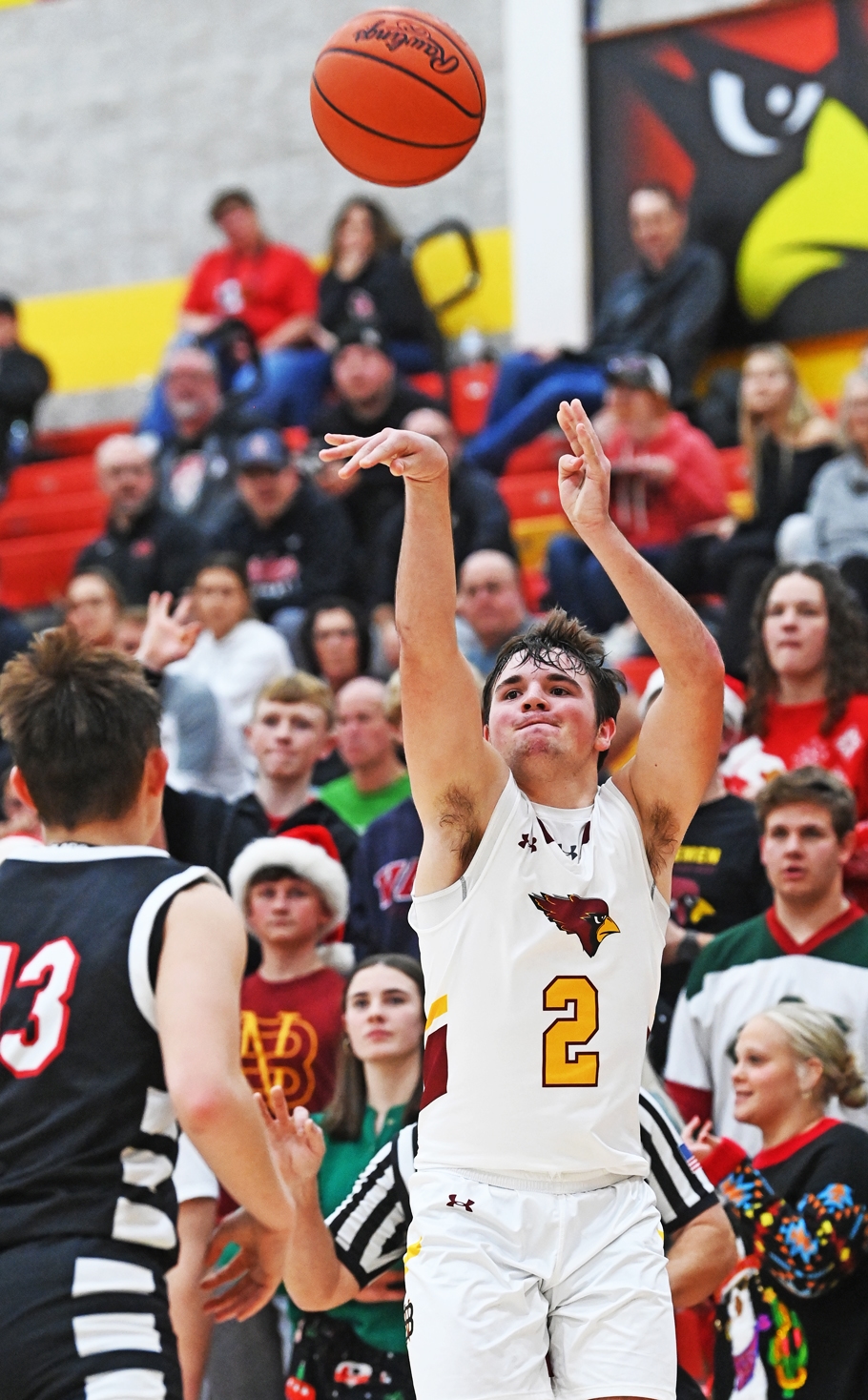 They did a lot of things well, and made a lot of three-point shots (Aaron Thieman, above). But in the end...New Bremen lost a beauty of a basketball game to Jonathan Alder Saturday night for lack of the rudiments. There's a reason they call them 'free throws'!