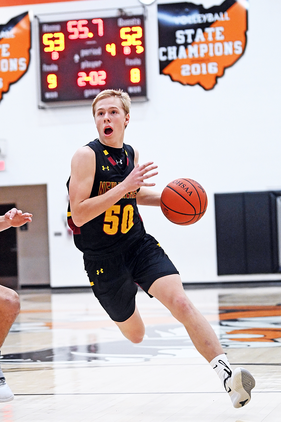 It was tough, and it was competitive, and for 31 minutes it looked like vintage Jackson Center basketball. But New Bremen and David Homan (below) flipped the script in the final minute to escape Thursday with a pre-Christmas 56-53 win over the Tigers.