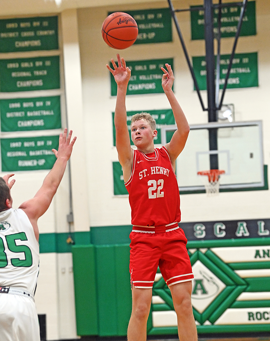 They built a commanding halftime lead, only to see Anna creep back in the second half, tie the game, and misfire on its chances to win. But St. Henry and Sam Koesters (below) didn't misfire, making shots and free throws down the stretch to win. Read about the game in Sunday's Press Pros.