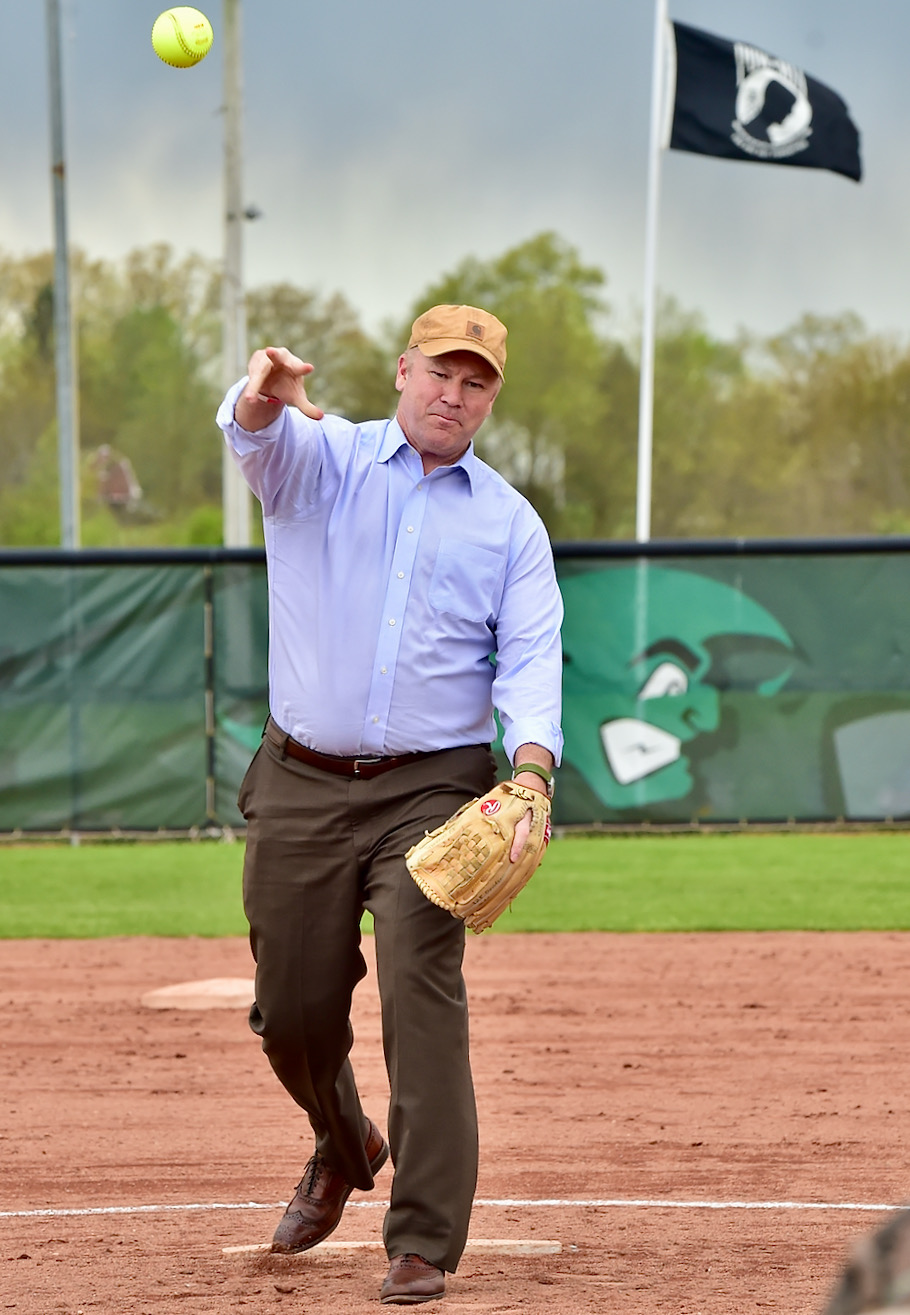 The Greenville Green Wave celebrated a Miami Valley League championship Friday evening. Sidney native Warren Davidson, (Pictured) U.S. Representative for Ohio’s 8th Congressional District, threw out the first pitch to Greenville catcher Susie Blocher prior to Greenville’s 8-3 victory against Sidney. Read girls softball by Greg Billing inside today's Press Pros.