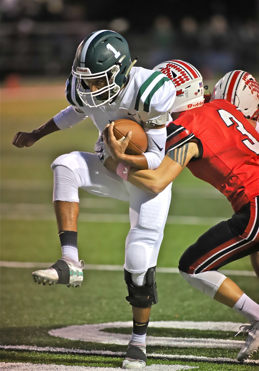 Greenville and running back Marcus Wood (#1, below) spoiled Tippecanoe's homecoming festivities with a methodical offense and a few turnovers to stay in contention for the Miami Valley League title. Greg Billing writes the story in today's Press Pros.