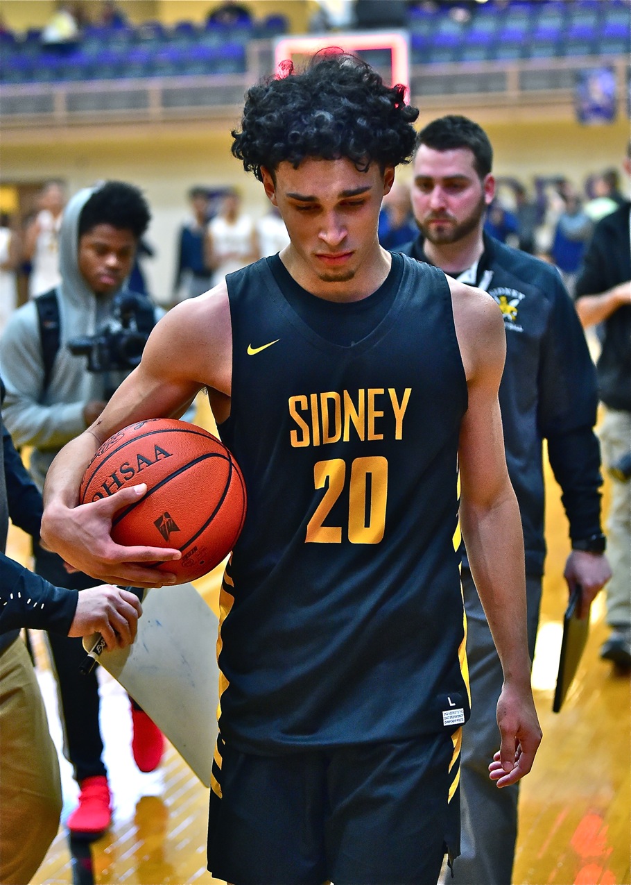 End of an era...An emotional Andre Gordon leaves the court for the final in his remarkable career at Sidney - 2,013 points, 550 assists, the Jackets' all-time scoring leader, and a 20-win season in his senior year. "We gave it all we had," said Gordon. Read more from Joe Neves as Sidney falls to Springfield in the Div. I sectional final.