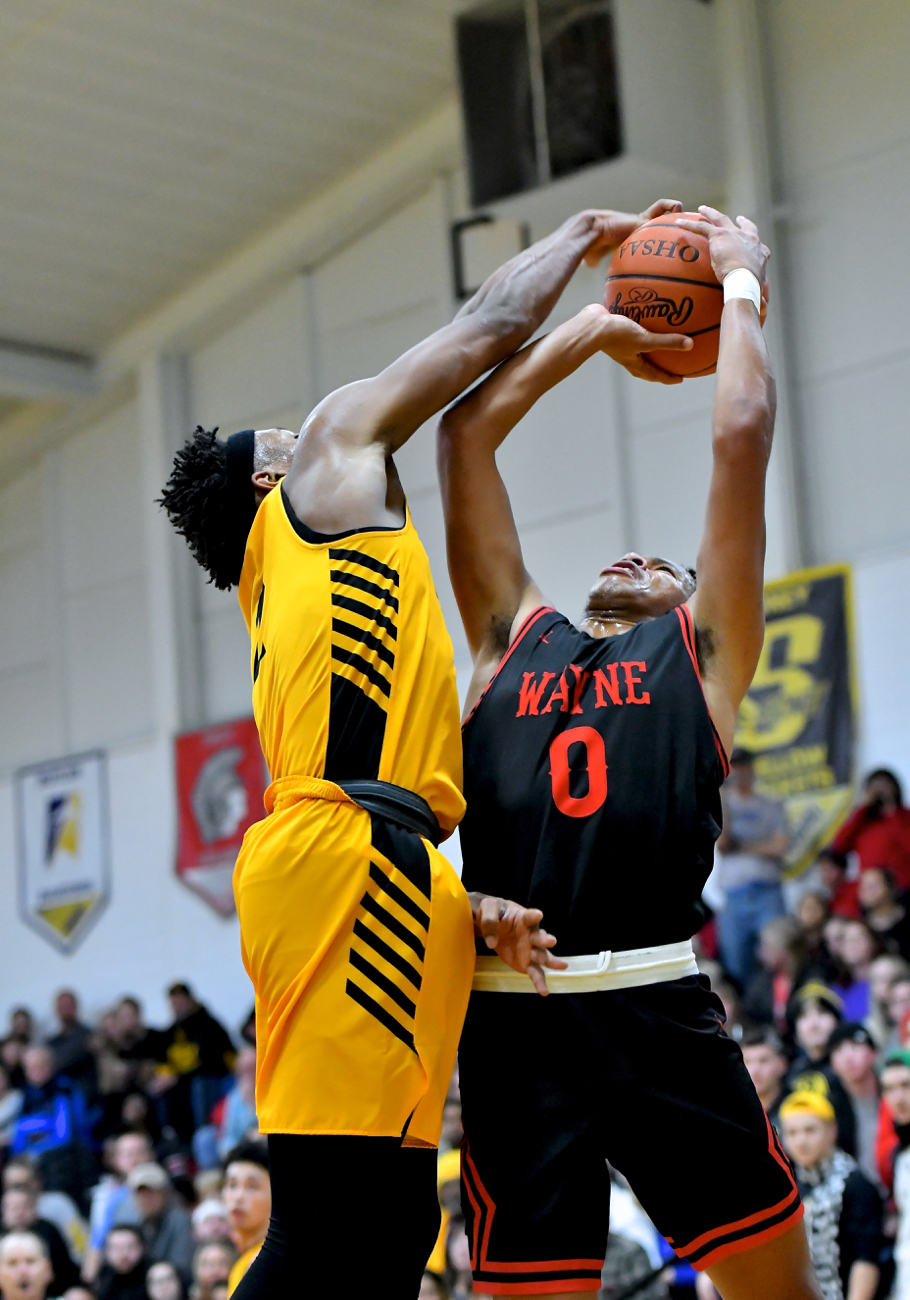Ratez Roberts (blocking, left) played his best on both ends, while teammate Andre Gordon took control of the game in the second half. But it took an improbable three-pointer from an improbable source to set up a fantastic finish, and Sidney's OT win over Wayne. Read more in today's Press Pros.