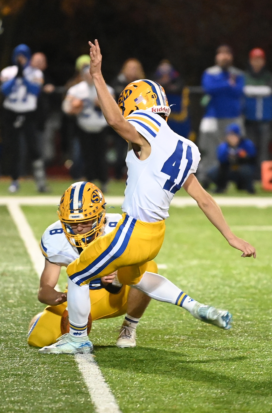 Both teams 9-0, and the Miami Valley League on the line ... who's surprised it came down to a few big plays? Tipp made more of them en route to a 35-21 win to claim the MVL title and cap a perfect 10-0 season. Red Devil RB Xavier Melton stole Xenia RB Deaunte White's show, gashing the Buccaneer defense with two game-altering runs after the defense produced a crucial takeaway. Coach Matt Burbacher celebrates his first undefeated season! (Pictured)