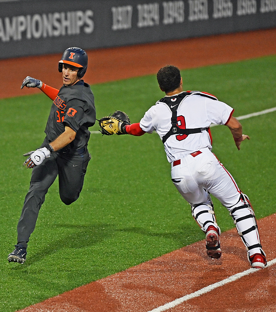 The score was better, and the pitching was better. But in the end the familiar issues of free bases and sloppy play allowing a run in the top of the ninth (above) cost Ohis State its 36th loss of the season in a 4-2 decision to Illinois.