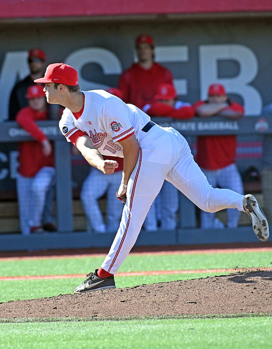 They scored 14 runs on 15 hits in the Bill Davis home opener. But more than a win, the baseball Buckeyes got valuable playing time for starter Wyatt Loncar (below), and a look at a piece of their immediate future with the 2022 pitching debut of co-captain Griffan Smith.