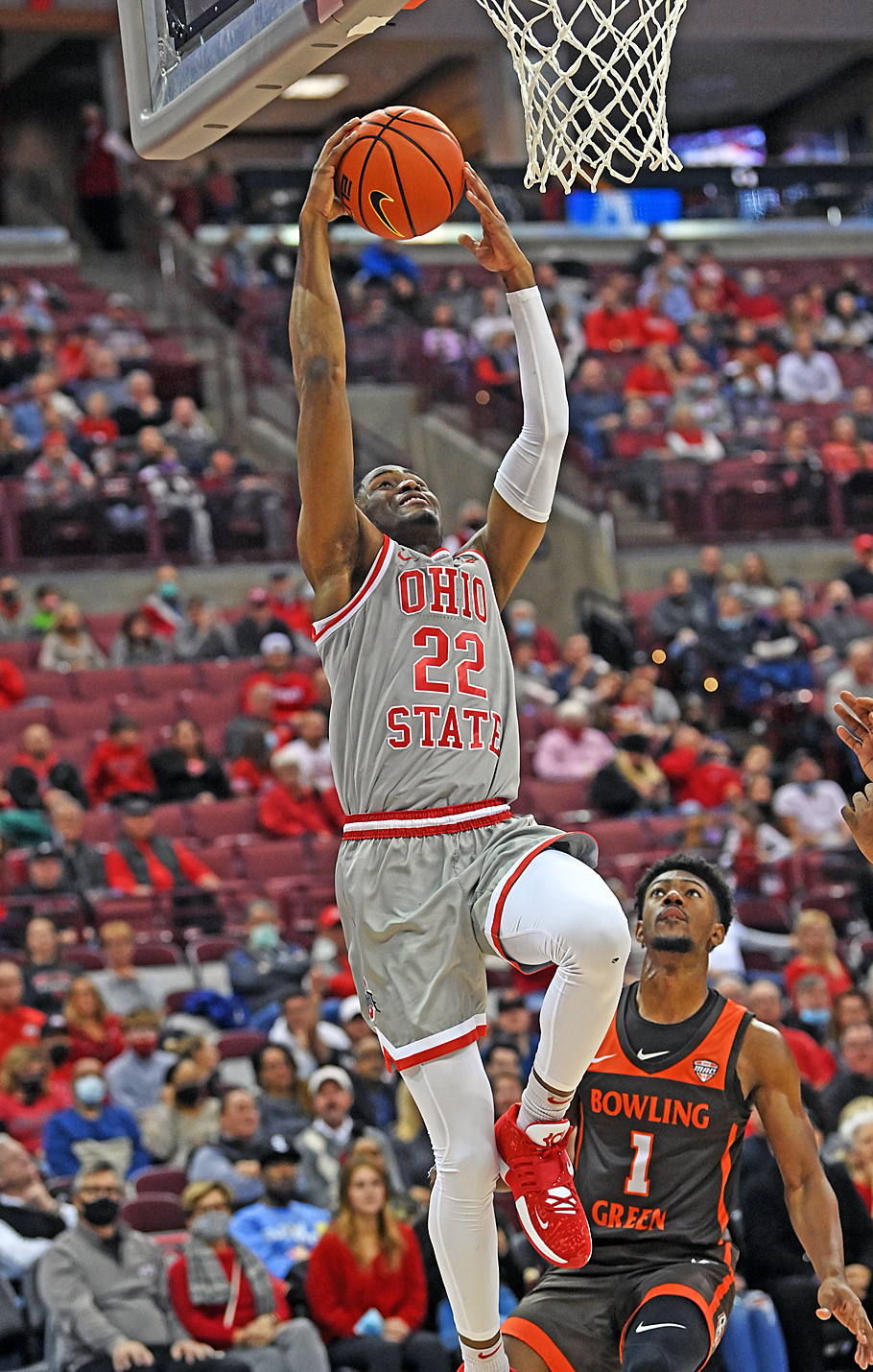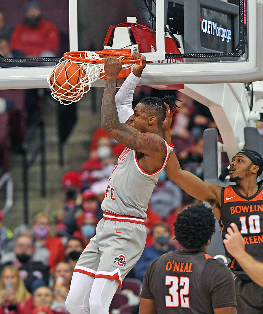 The bench (Eugene Brown, below) got a lot of minutes as the margin was massive, as expected...and overdue. But the relief Ohio State felt over dominating Bowling Green bowed to its concern over an injury that brings a dark cloud entering a tough pre-conference stretch. Bruce Hooley writes Monday's Buckeye win over Bowling Green.