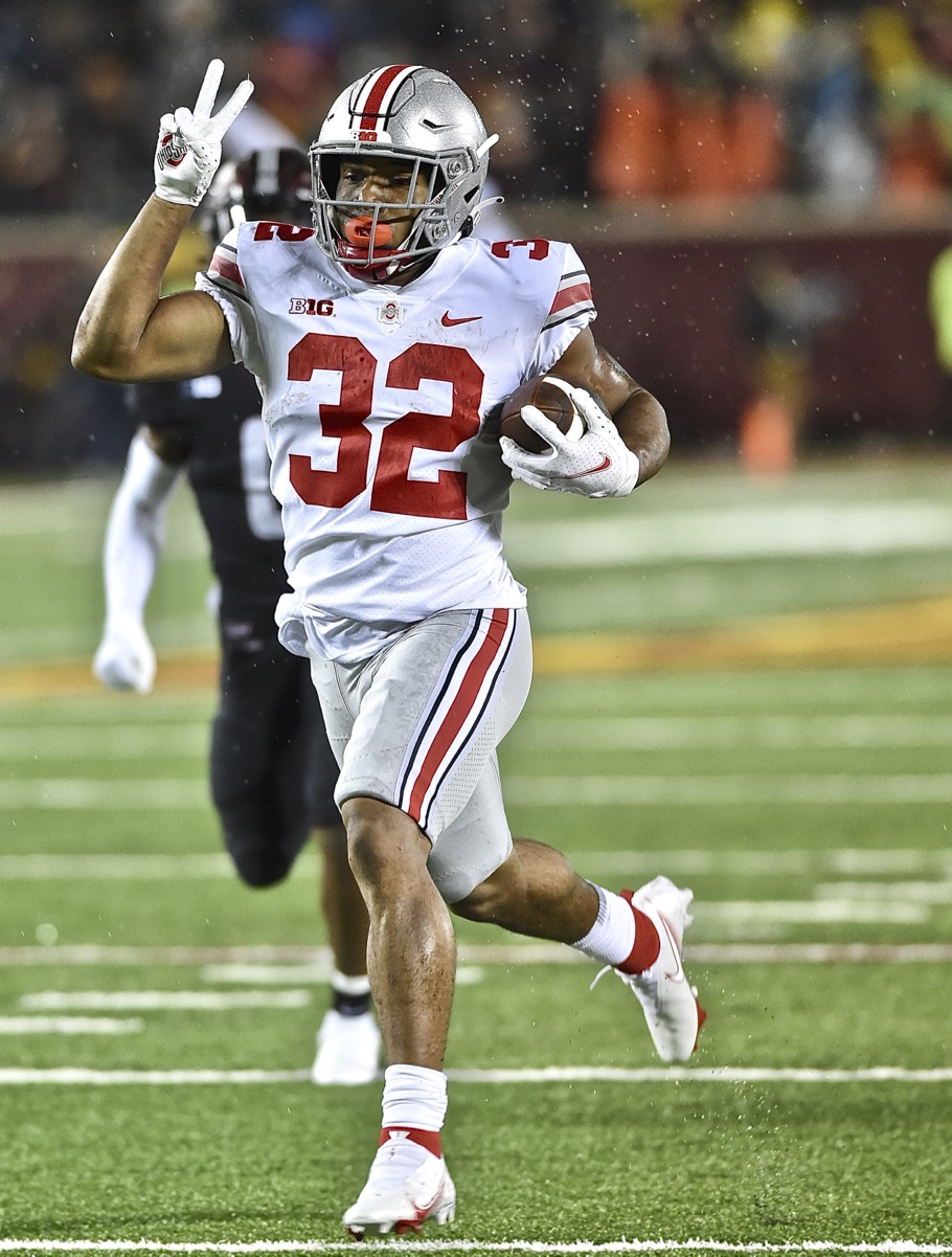 With some attitude...freshman TreVeyon Henderson broke Archie Griffin's single-game rushing mark for a freshman and scored three touchdowns (below) in a gritty Saturday Buckeye win over Tulsa. Read about it in the latest Press Pros feature.