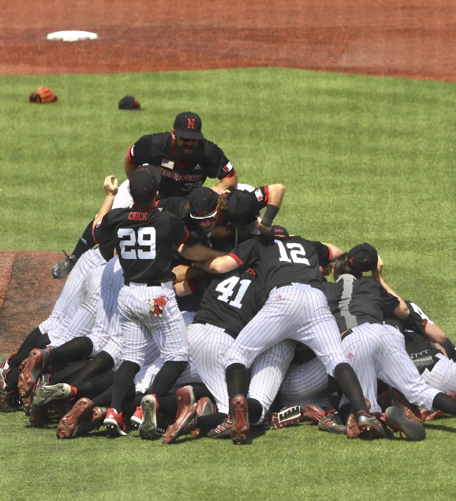 After Nebraska clinched the league title in game one of a Sunday doubleheader (below), Ohio State ace Garrett Burhenn stunned Indiana, battling for an NCAA bid, with a sparkling 7-hit shutout and a 3-1 Buckeye win. Mark Znidar writes in Monday's Press Pros.
