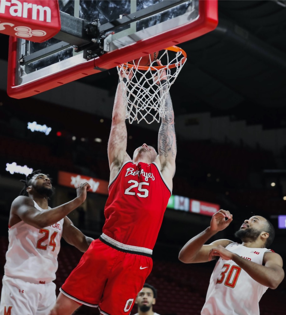 Kyle Young (below) had a career-high 18 points and the #4-ranked Buckeyes continued their hot streak (after a slow start) with a 73-65 road win Monday over Maryland. Bruce Hooley writes how they did it in the latest Press Pros feature.