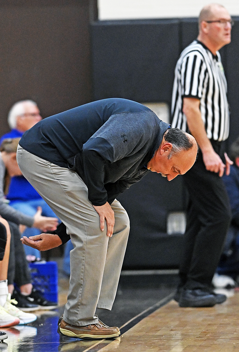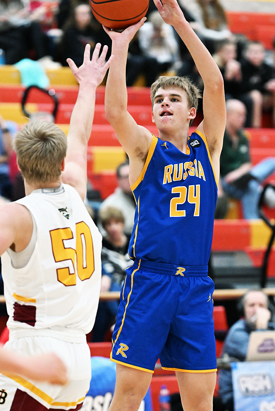 Frustration...Russia coach Paul Bremigan saw his Raiders team overcome a big first half deficit, cut it to a single point in the fourth quarter, but they could get no closer, ultimately falling to Fort Loramie in Thursday's Shelby County League showdown, 54-41. Read about the game in Friday's Press Pros.