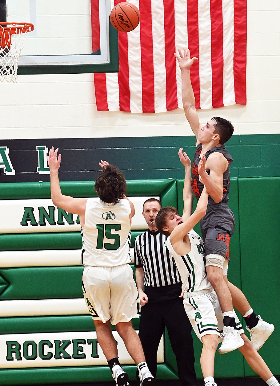 Game winner....Jackson Center's Camdyn Reese releases the game-winning shot with 4.7 seconds left to play Friday, lifting the Tigers to a heart-stopping 57-56 win over Anna. Read about the game in Saturday's Press Pros.