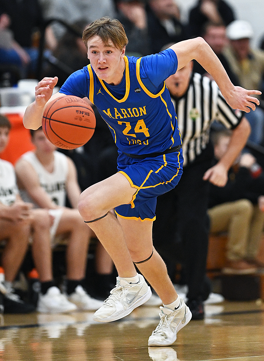 What coaching feels like...Minster coach Mike McClurg reacts (above) as the two teams combined for a total of 41 turnovers, pounded each other defensively, and struggled at the foul line. Yet, Minster made a pair of free throws at the end to steal a much-needed win from Botkins. Read about the game....