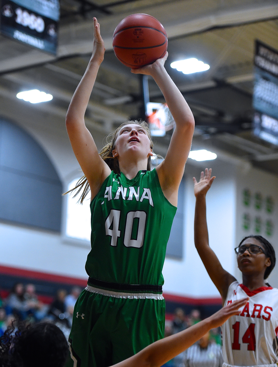 The Anna Rockets cruised into the Division III district semifinal ... setting up another meeting with Miami East ... with a stout defense effort that put a deep freeze on the Northridge Polar Bears on Thursday night. Anna's Lauren Barhorst (pictured) was one of 10 players to score for the Rockets, she finished with 10. Read Thursday's story by Greg Billing inside today's Press Pros.