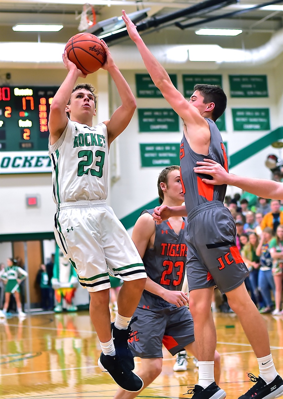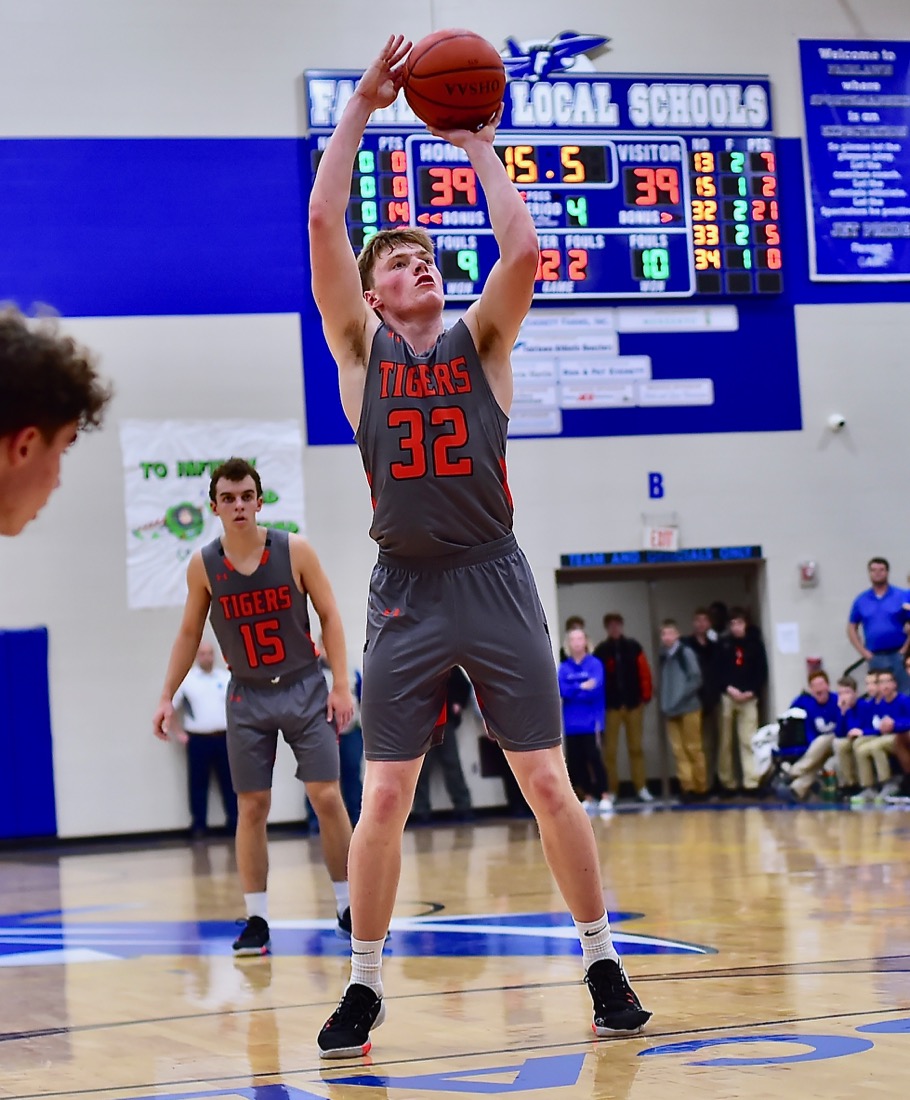 Game of numbers....With the outcome on the line (and the scoreboard), Aiden Reichert (below) sealed the outcome of Jackson Center's win over Fairlawn at the foul line. Read more about it in today's Press Pros inside feature.