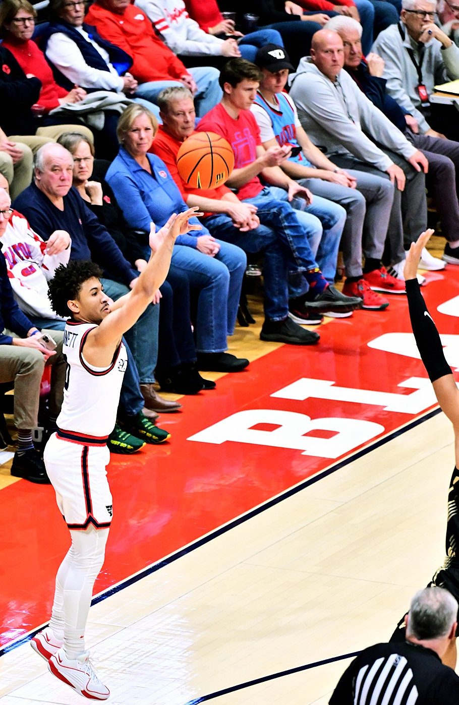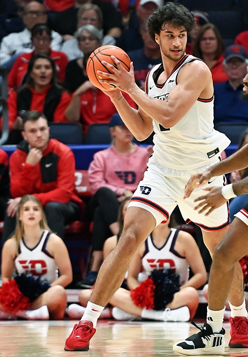 DaRon Holmes II, affectionately known as Deuce because of the II after his name, scored 23 points, snagged 17 rebounds, recorded five dunks and blocked three shots to lead the Flyers to their fourth straight victory and he was given ample help from point guard Kobe Elvis, who shed a shooting slump to add 22 points to Holmes' total as UD lifted its record to 7-2.