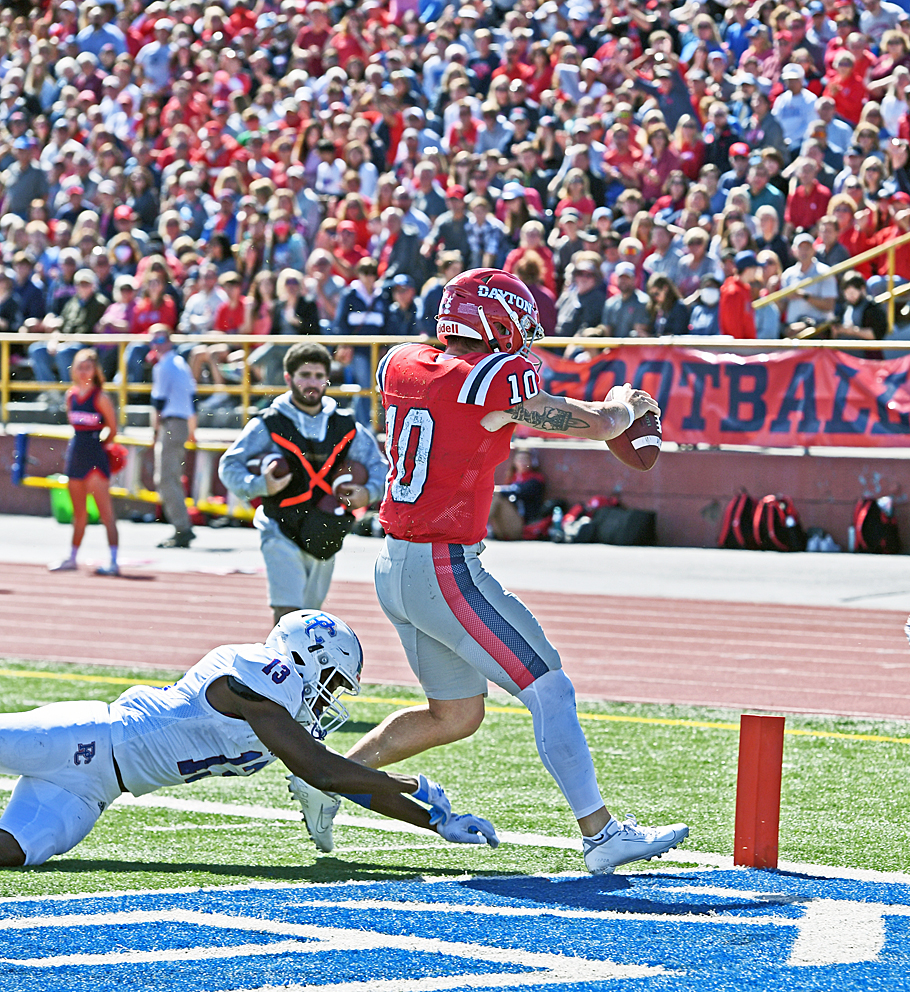 After falling behind by 23 points in the first quarter to Presbyterian and its unorthodox way of playing football, the University of Dayton Flyers scored 49 unanswered points and won, 63-43, in a game UD coach Rick Chamberlin called, "Wild and woolly," and it was much, much more than that as the Flyers won the Pioneer Football League Opener. Read more UD Football by Hal McCoy inside todays Press Pros.