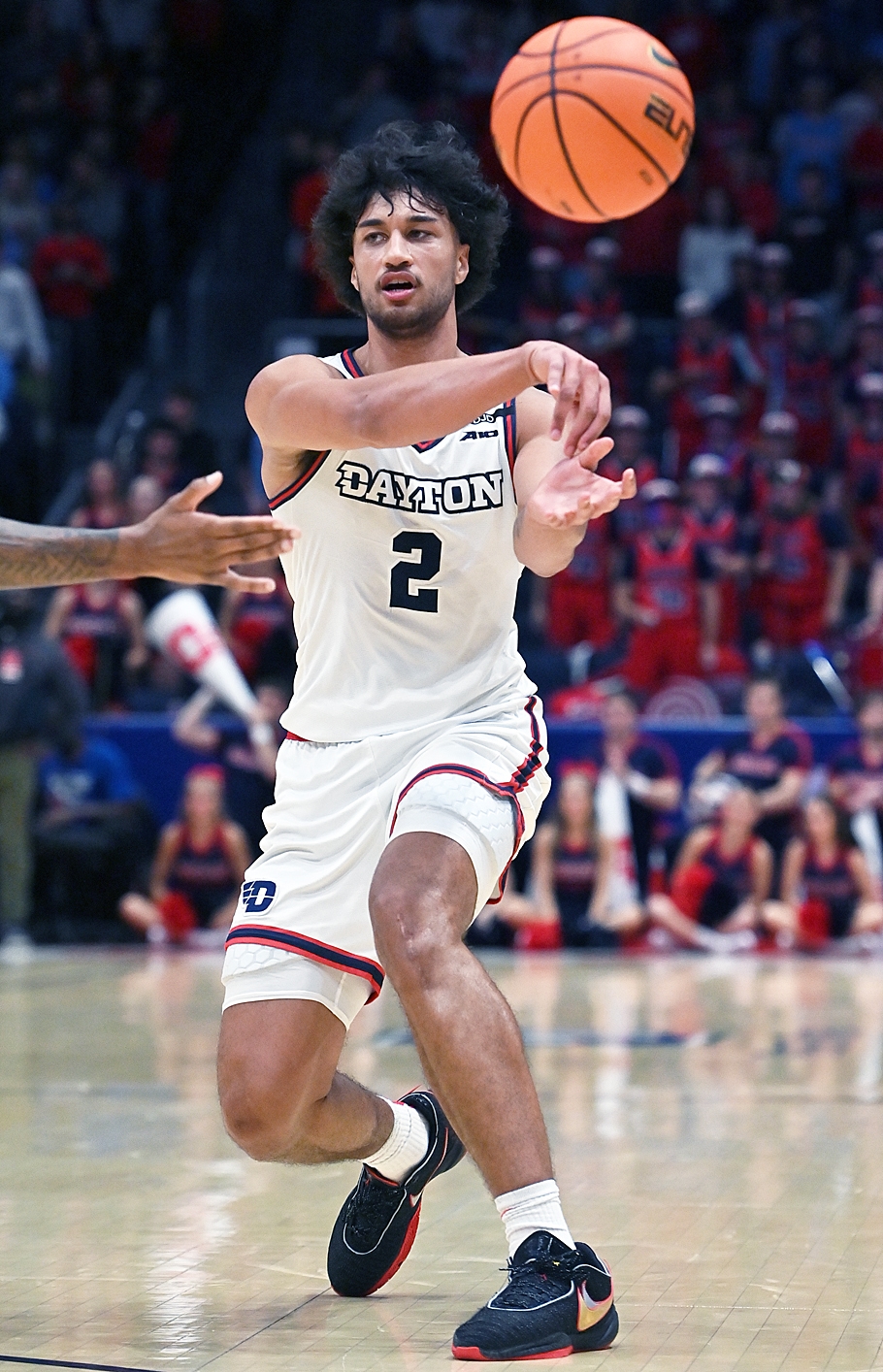 After leading by 21 points, 56-35, early in the second half, the University of Dayton couldn't hold off onrushing North Carolina as the Tar Heels scored 58 second-half points and recorded their second biggest comeback in school history to beat the Flyers, 92-90 in the first round of the Maui Invitational. Nate Santos led UD's scoring with 15 points. (pictured)