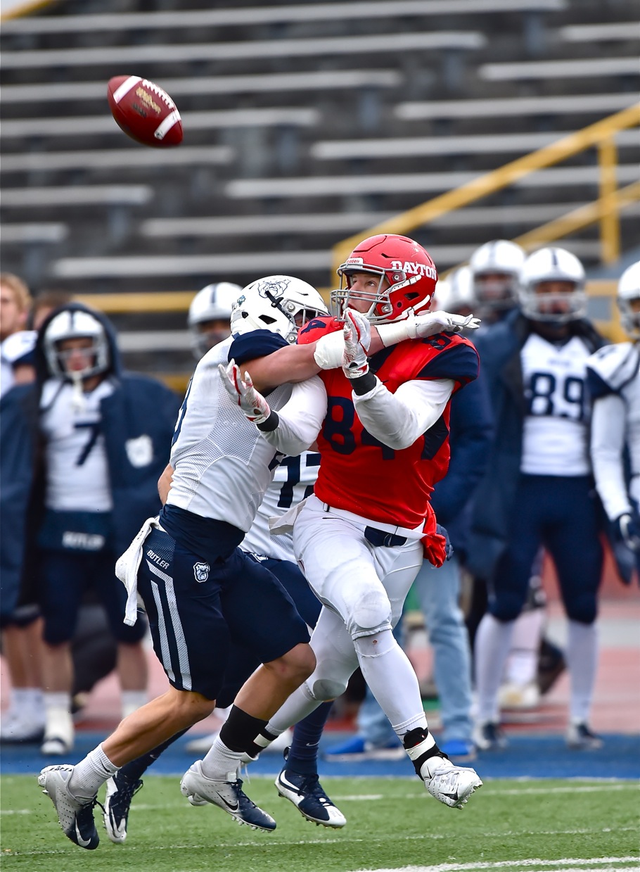 Record Setting...Adam Trautman (below) caught five passes to become the all-time Dayton leader for receptions in a season, and the Flyers' improved their own mark for 2019 with a 51-38 win in the season finale. Read about it on Press Pros.