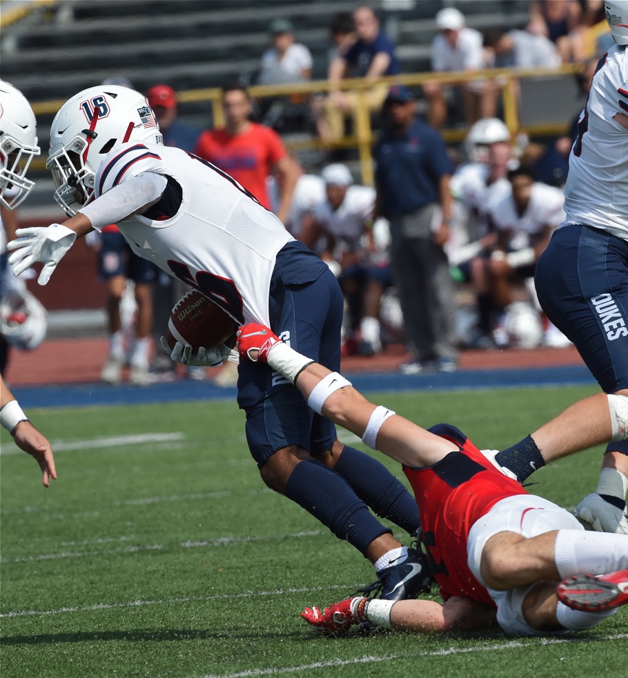 Frustrating...Little things, like tackling and missed assignments, cost the Dayton Flyers in Saturday's home opener against Duquesne. The Flyers scored 31 points, but lost to a determined running attack, 35-31. Read more about the game in today's Press Pros feature.