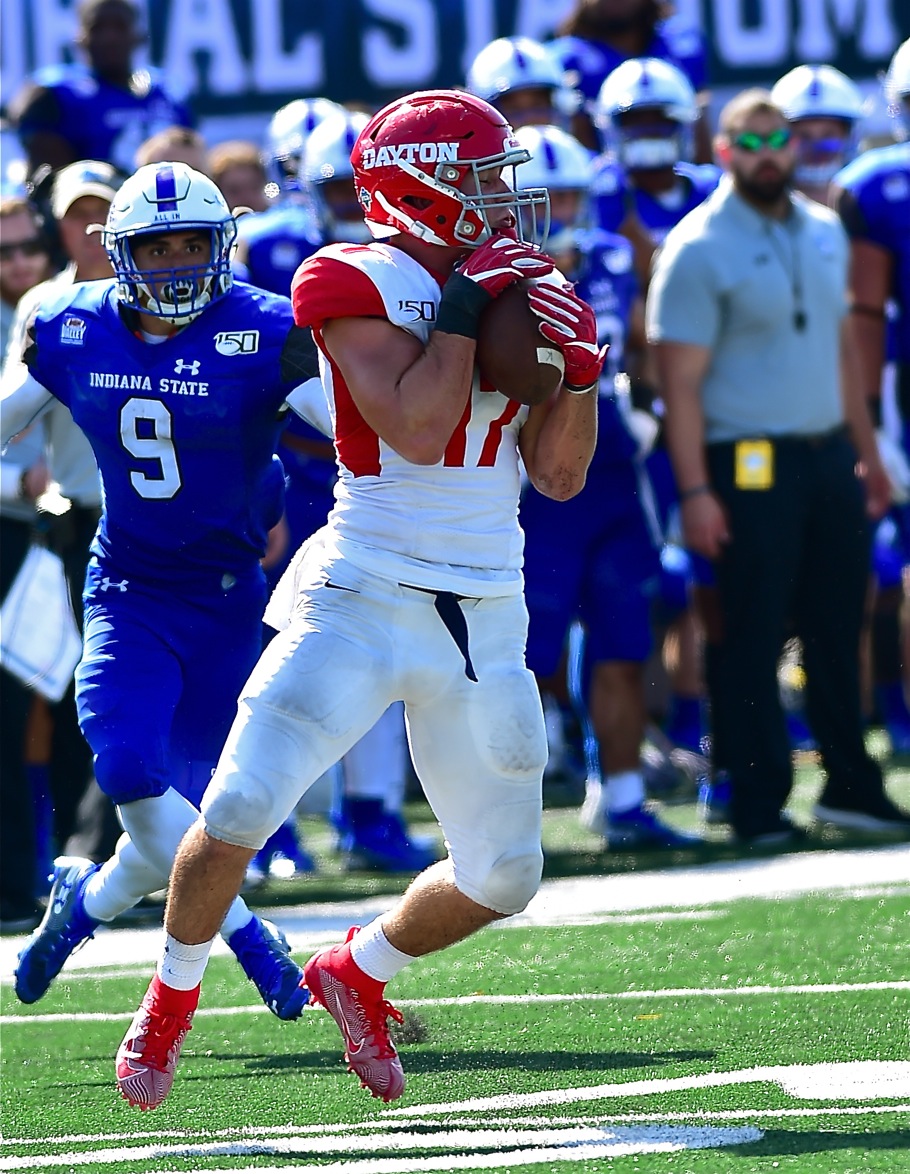 Another week and another record for Adam Trautman (below)...Dayton gives up more yards and points than they would have liked, but for good reason. Nonetheless, the Flyers improved to 4 and 1 with a win in Indiana over Valparaiso. Hal McCoy writes the story in today's Press Pro feature.