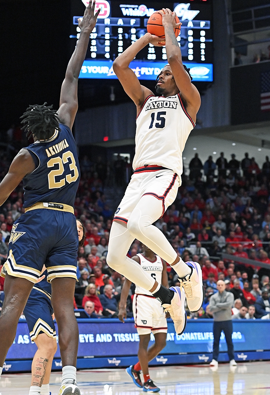 After a shocking upset loss at Richmond last Saturday, the question of the day was, 'Will the Dayton Flyers bounce back Tuesday against George Washington and will DaRon Holmes II shake off a shaky performance?' And the answer was yes and yes as UD buried George Washington, 83-61, and Holmes dominated with a double-double, 25 points and 12 rebounds.